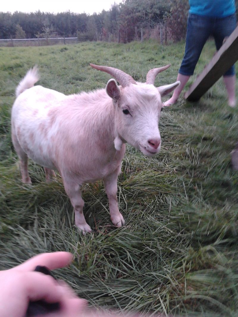 het zwarte is een bokje en is genoemd jelle de 2 met het witte lijfjes zijn 2 miekes met de zwarte kop noemt louise en met de bruine kop hanne