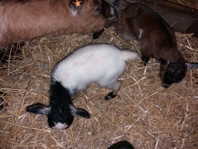 De eerste lammetjes zijn geboren op de dwerggeitenhoeve. De witte noemt lily en en de zwart schimmel noemt Marie. Alle 3 stellen het goed.