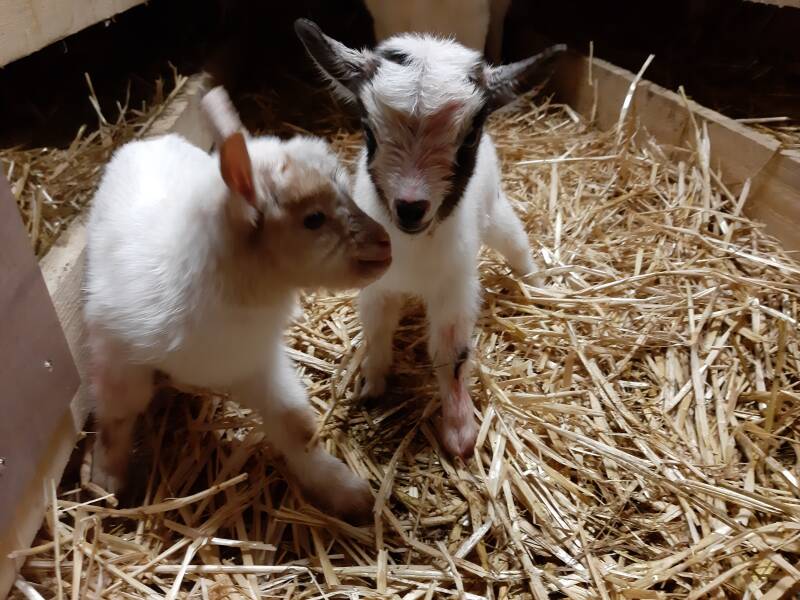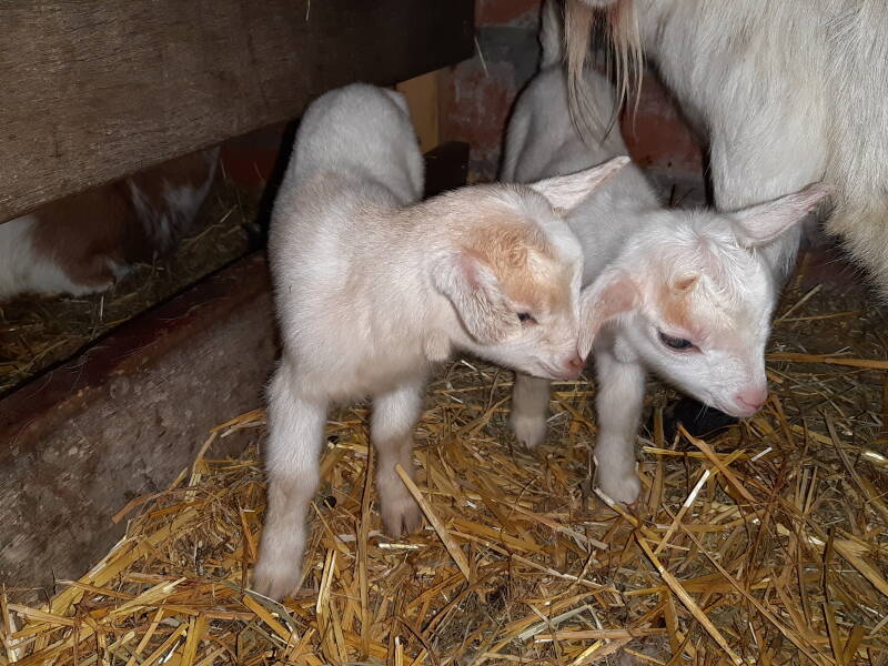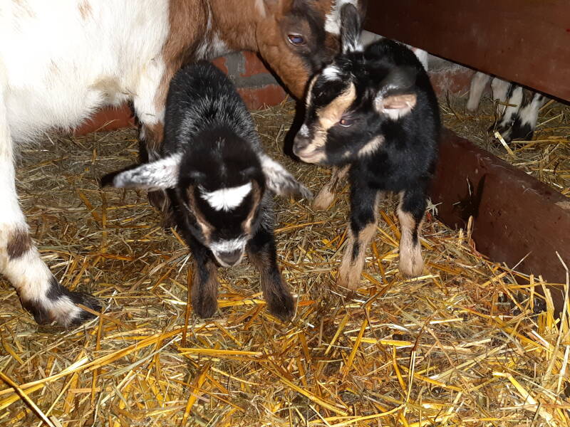 Josefien is op 28\03 bevallen van een bokje en een Mieke. Ze noemen stan en nathalia. Het ging niet vlot we hadden gevoeld en konden er net niet aan. Na een paar keer persen schoof het lammetje op dan konden we er aan met een beetje hulp ging het vlot. De mama en haar lammetjes maken het zeer goed.